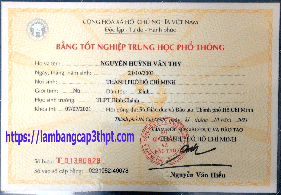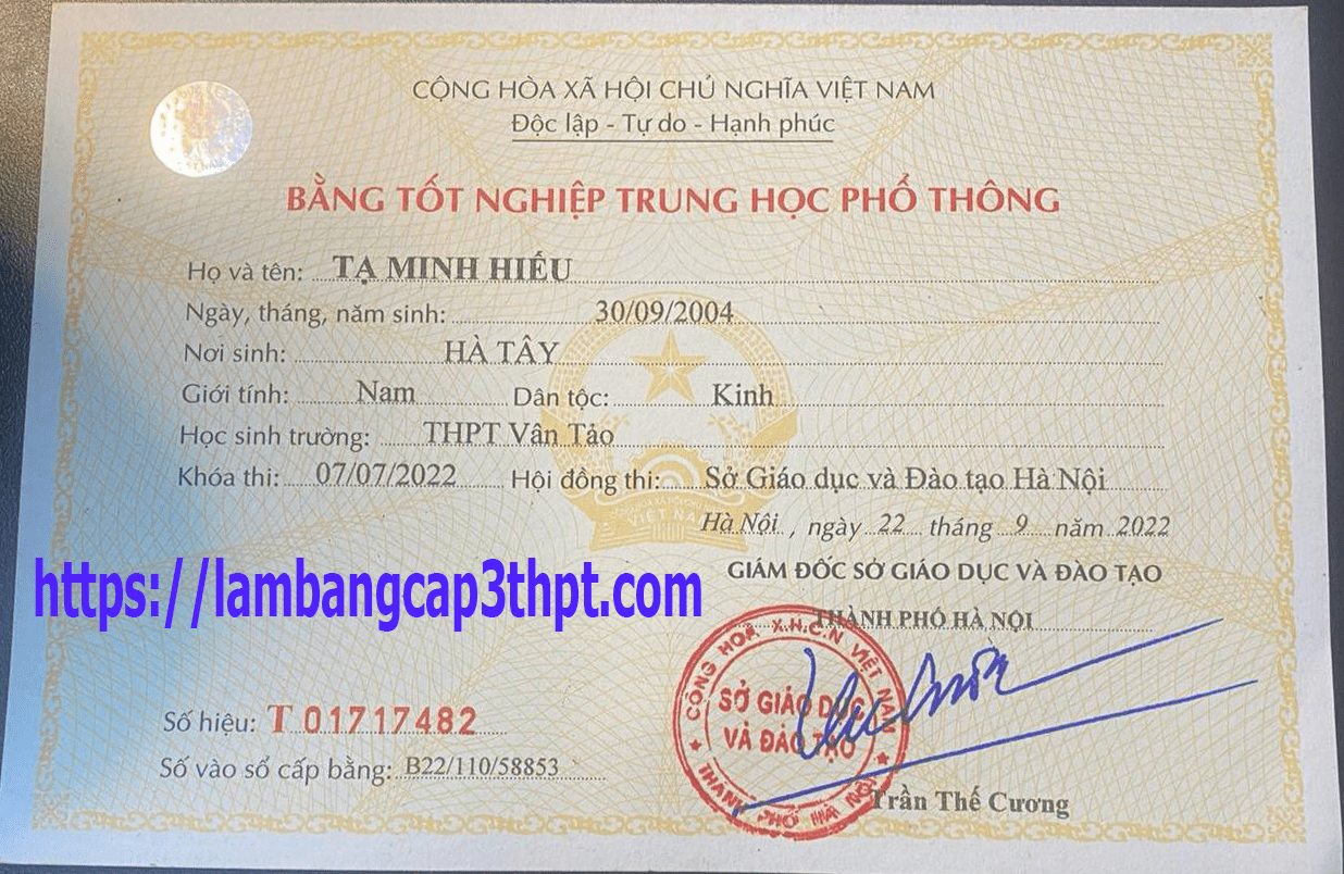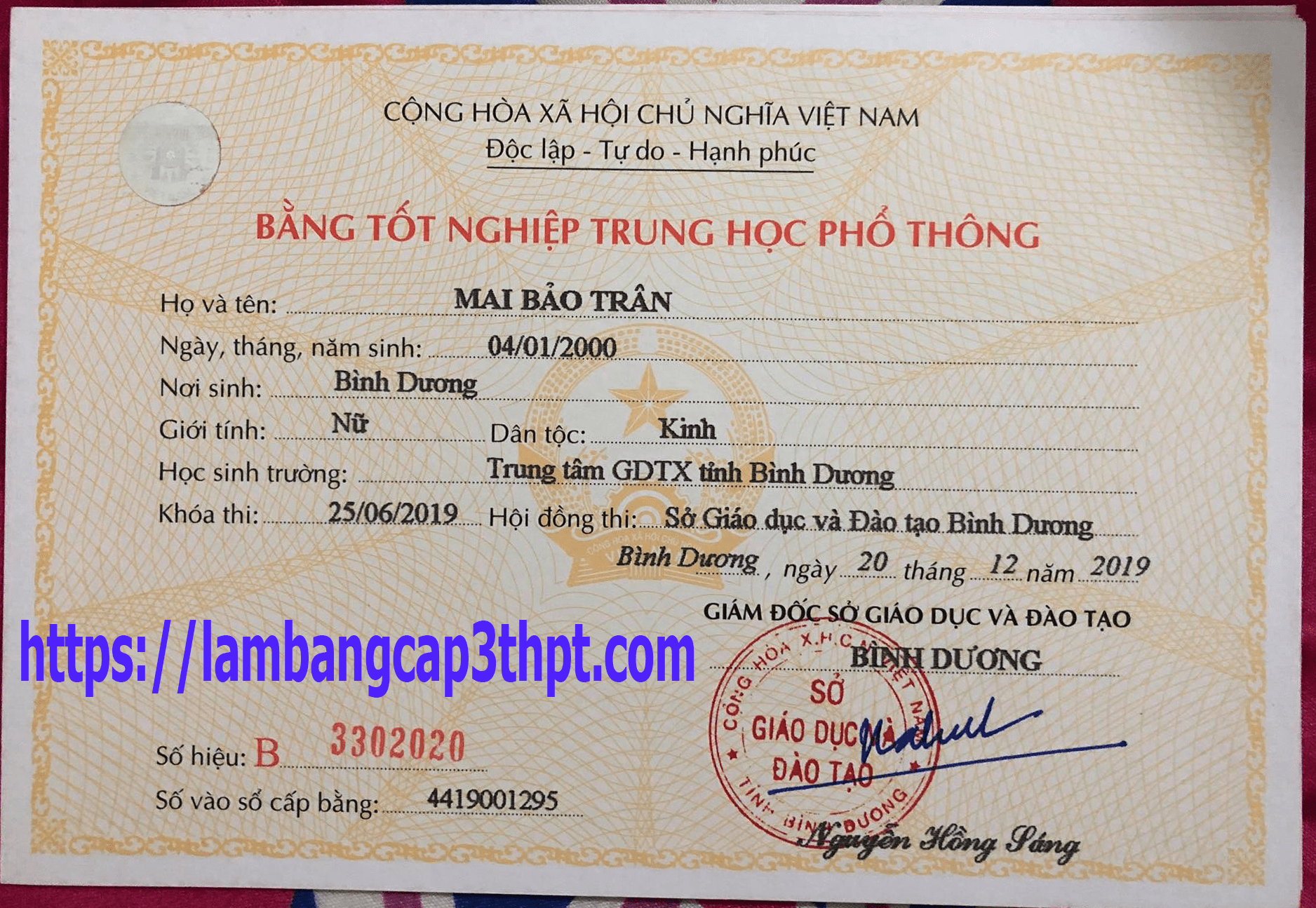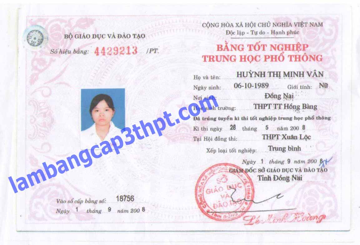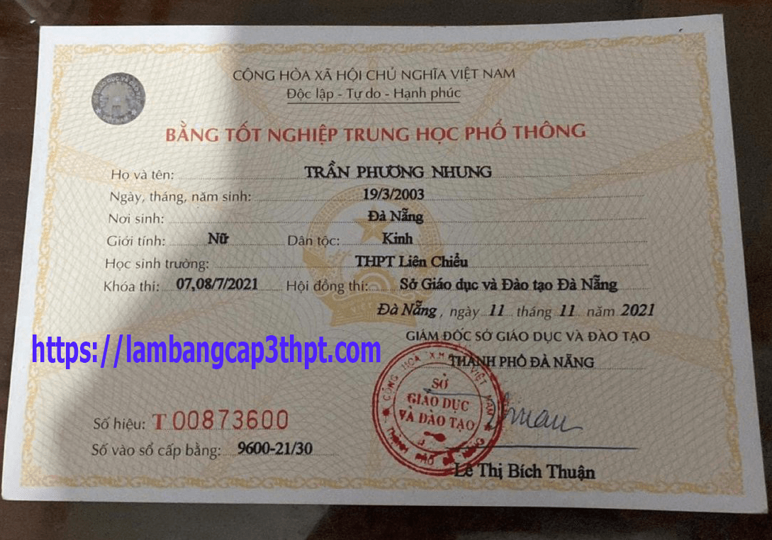 – Bằng THPT – Bằng Cấp 3 Ninh Thuận được làm từ phôi thật, tem thật của các trường. Do vậy, chúng tôi đảm bảo chất lượng như bằng thật chất lượng chính xác 100%. Bao soi, bao công chứng trên toàn quốc