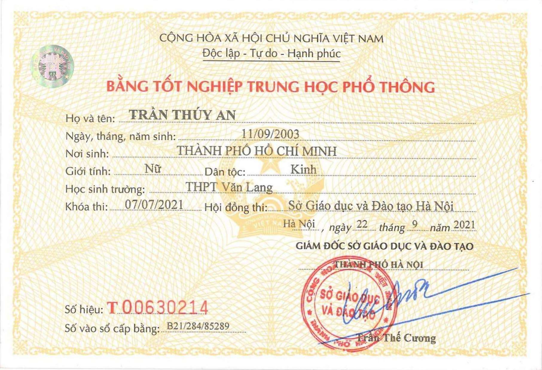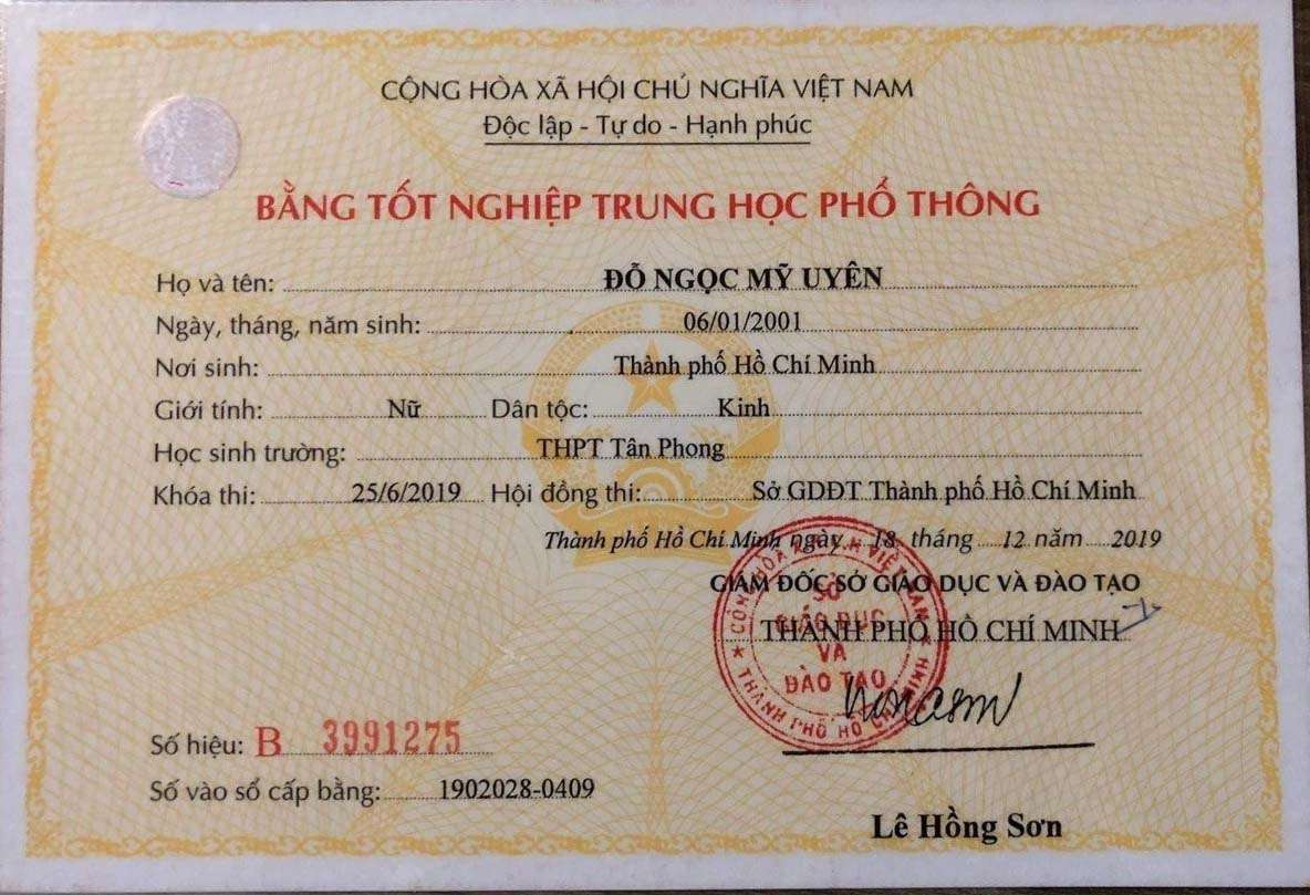 – Bằng THPT – Bằng Cấp 3 Ninh Thuận được làm từ phôi thật, tem thật của các trường. Do vậy, chúng tôi đảm bảo chất lượng như bằng thật chất lượng chính xác 100%. Bao soi, bao công chứng trên toàn quốc
